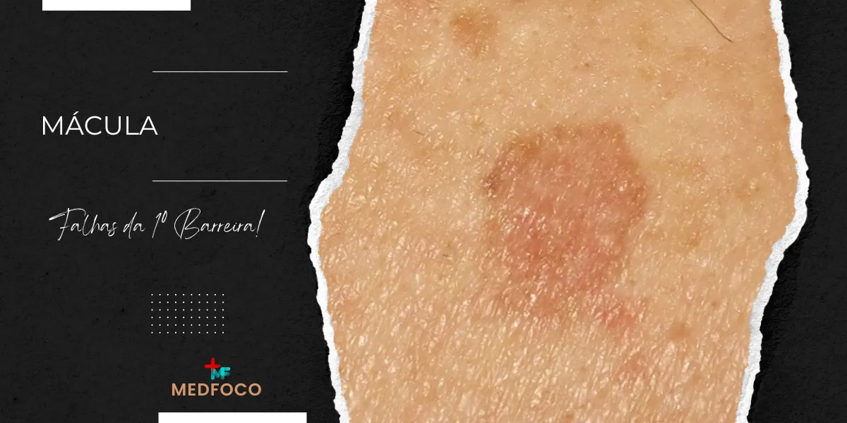 A mácula é uma lesão elementar caracterizada por uma alteração circunscrita da cor da pele, sem relevo, depressão ou alteração da espessura, visível apenas à inspeção. Pode apresentar colorações variadas, como eritematosa, hipocrômica, acrômica, hipercrômica ou purpúrica, dependendo da sua causa. Surge em qualquer região cutânea, mas é mais frequente em áreas fotoexpostas (melasma, lentigos), tronco e dorso (pitiríase versicolor), extremidades (púrpuras) e face ou membros (vitiligo). Sua epidemiologia varia conforme a etiologia: máculas pigmentares são mais comuns em mulheres adultas, máculas acrômicas como o vitiligo afetam cerca de 0,5 a 2% da população mundial, enquanto máculas eritematosas são comuns em infecções virais infantis. Entre os principais fatores desencadeantes destacam-se exposição solar, predisposição genética, alterações autoimunes, inflamações cutâneas, uso de medicamentos, traumas locais e distúrbios de coagulação.